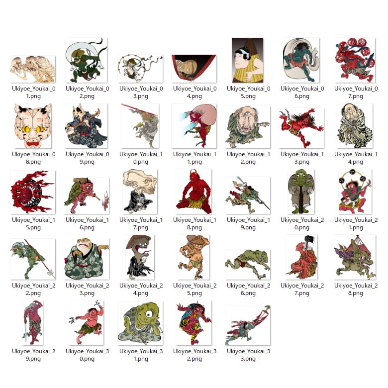 A curated pack of yokai illustrations based on public domain ukiyo-e,