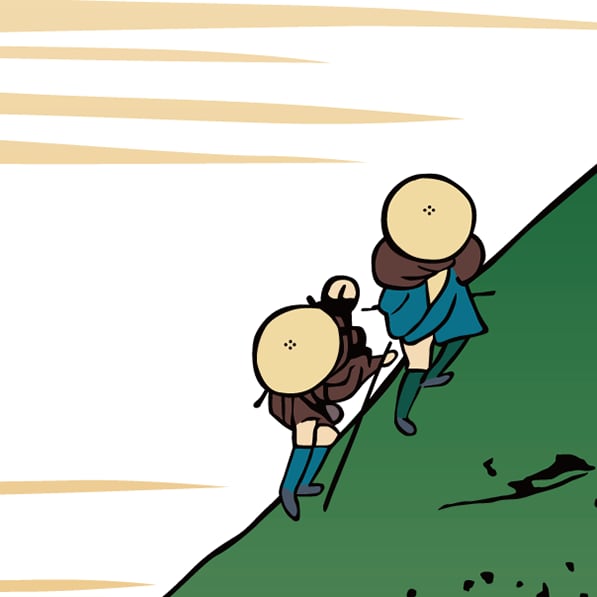capturing Mount Fuji beyond the winding mountain pass and the movement of travelers—