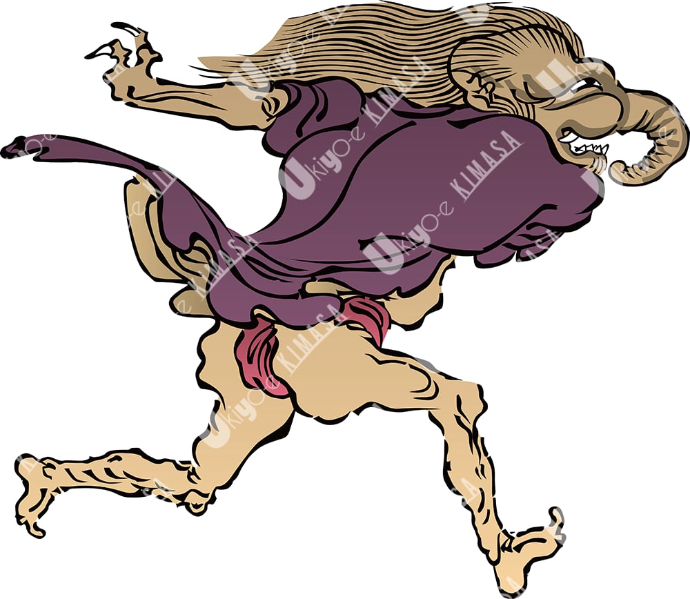 The Running Elephant-Headed Yokai depicts a mysterious creature