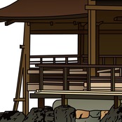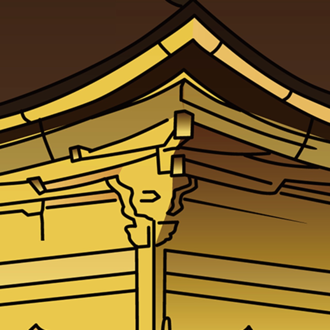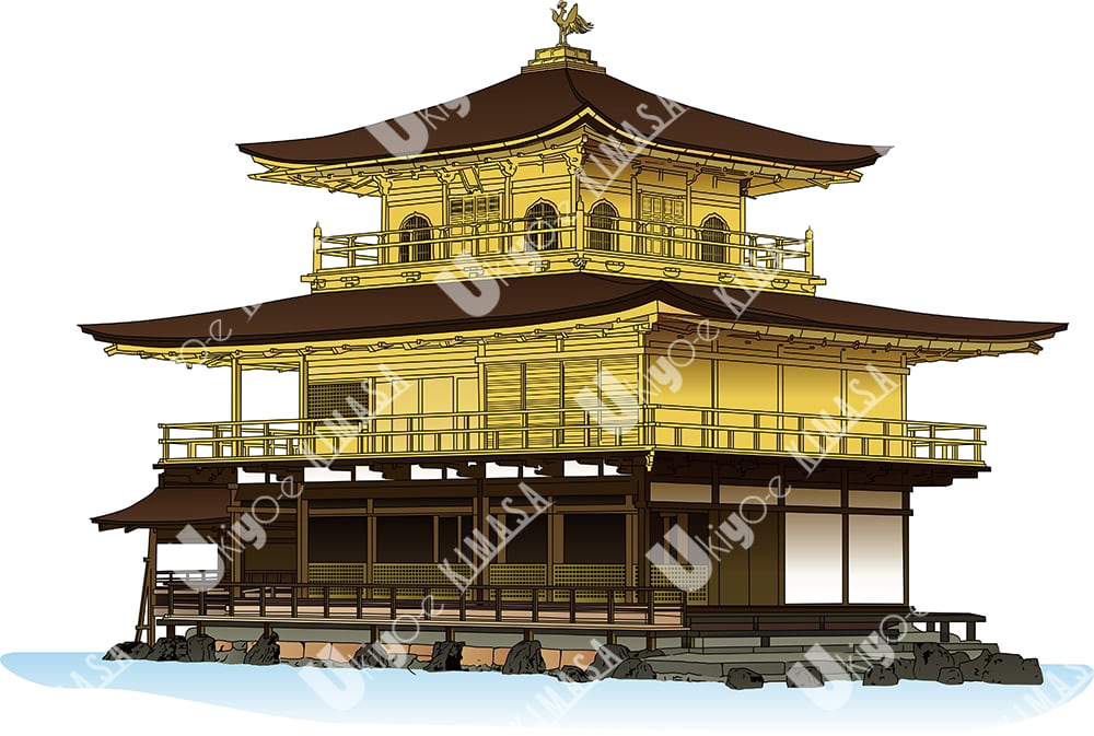Kinkaku-ji (The Golden Pavilion) depicts the iconic temple as an architectural form