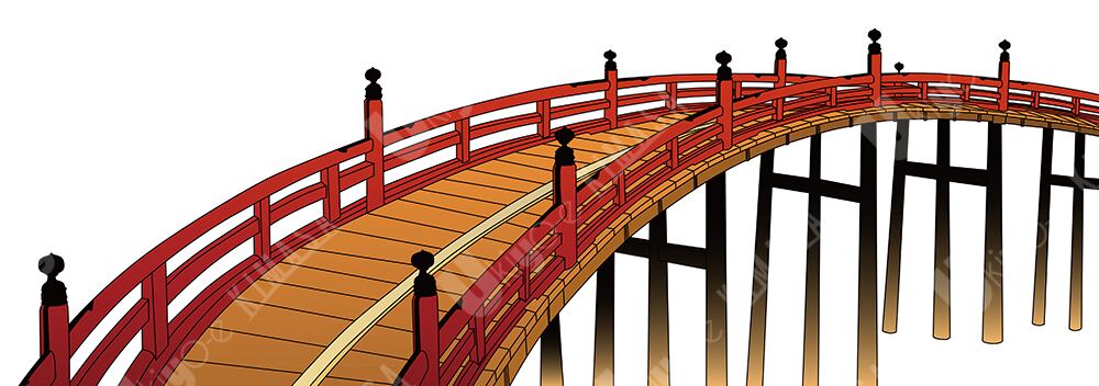 This artwork depicts a red bridge reconstructed from traditional ukiyo-e composition, refined as a modern design asset suitable for contemporary creative projects.