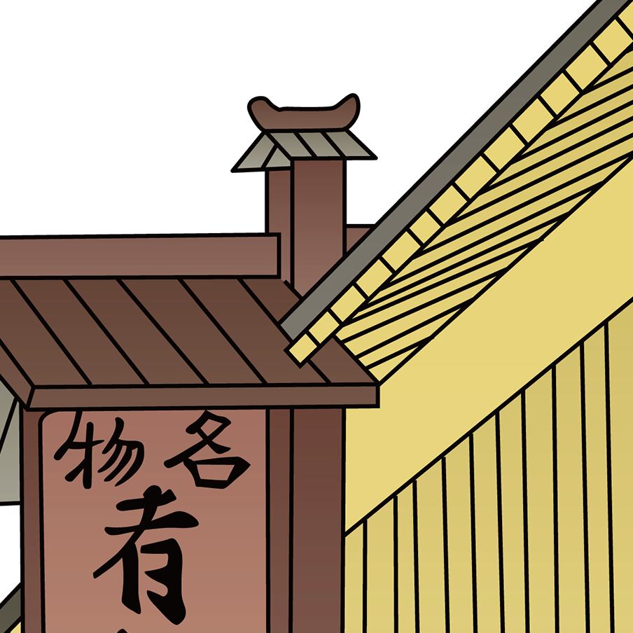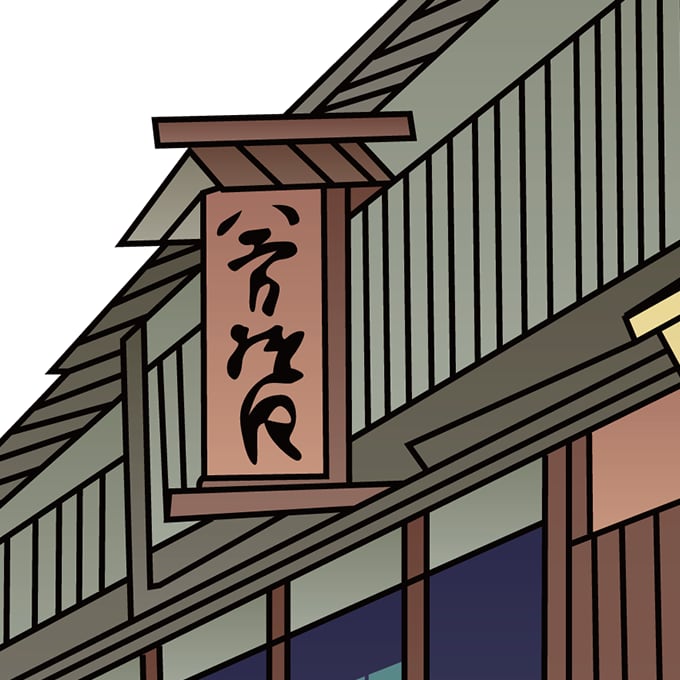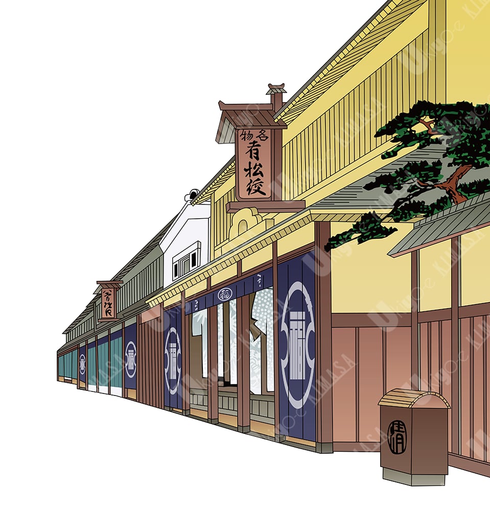 This artwork depicts a row of traditional Japanese shopfronts, reconstructed with an ukiyo-e-inspired composition and refined as a modern design asset suitable for contemporary creative projects.