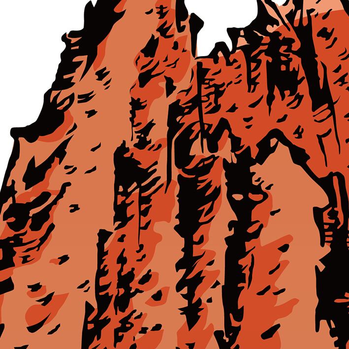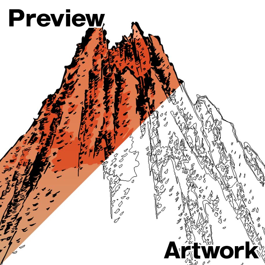 This illustration depicts a rugged mountain landscape with a strong, uneven surface, reconstructed for modern design use.