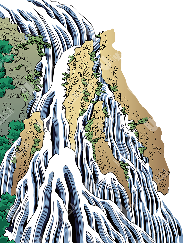 This design is a reconstructed ukiyo-e–inspired landscape,