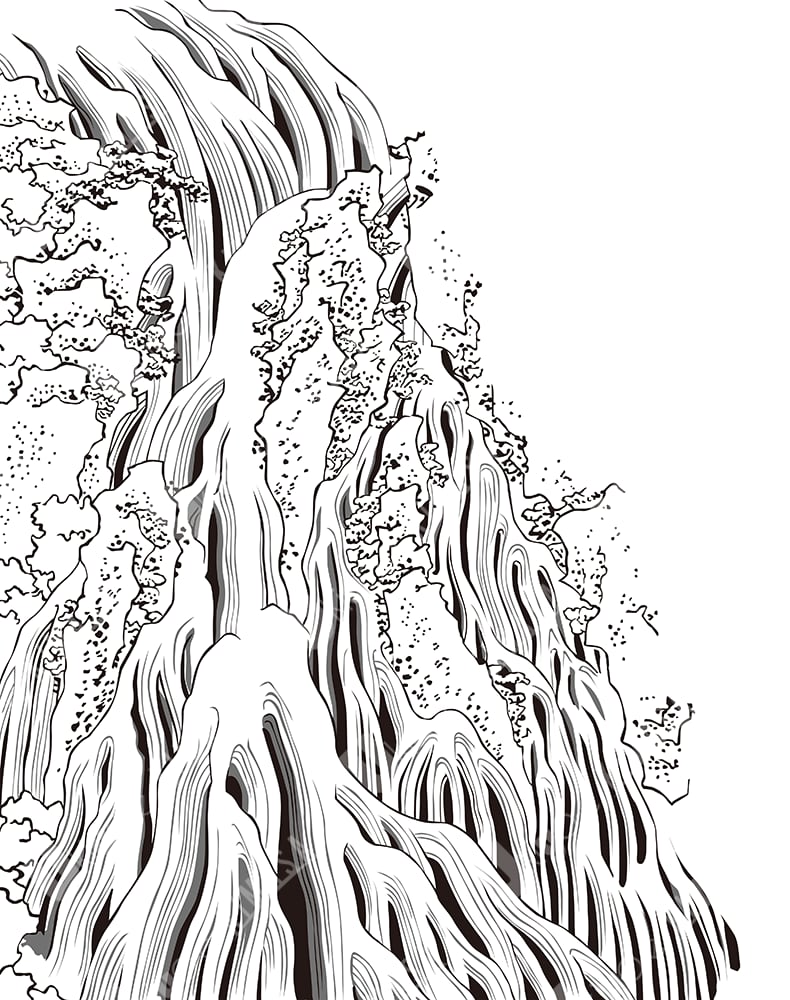 This black-and-white version emphasizes contrast, flow, and structure,