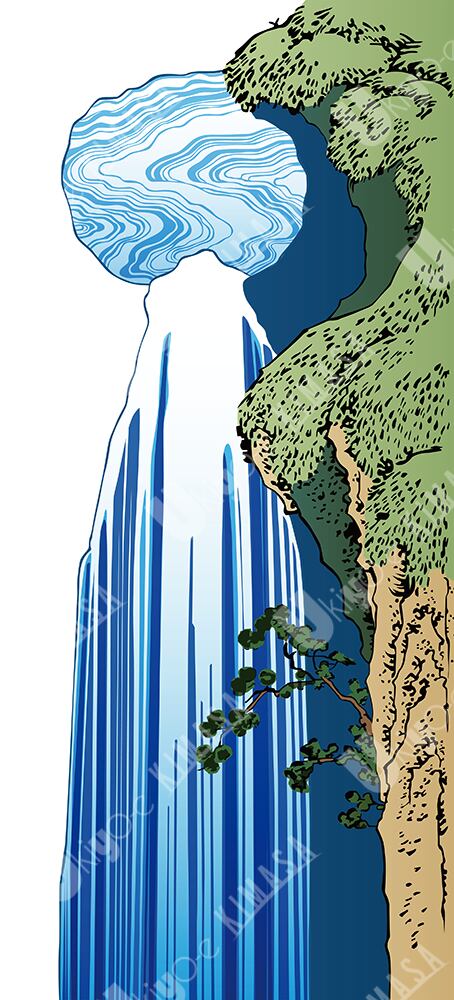 This vertical composition portrays water descending from above,