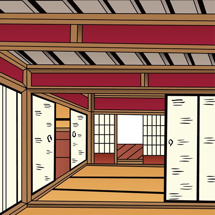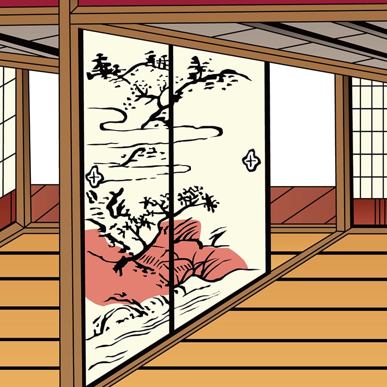 This composition depicts a shoin-style corridor,