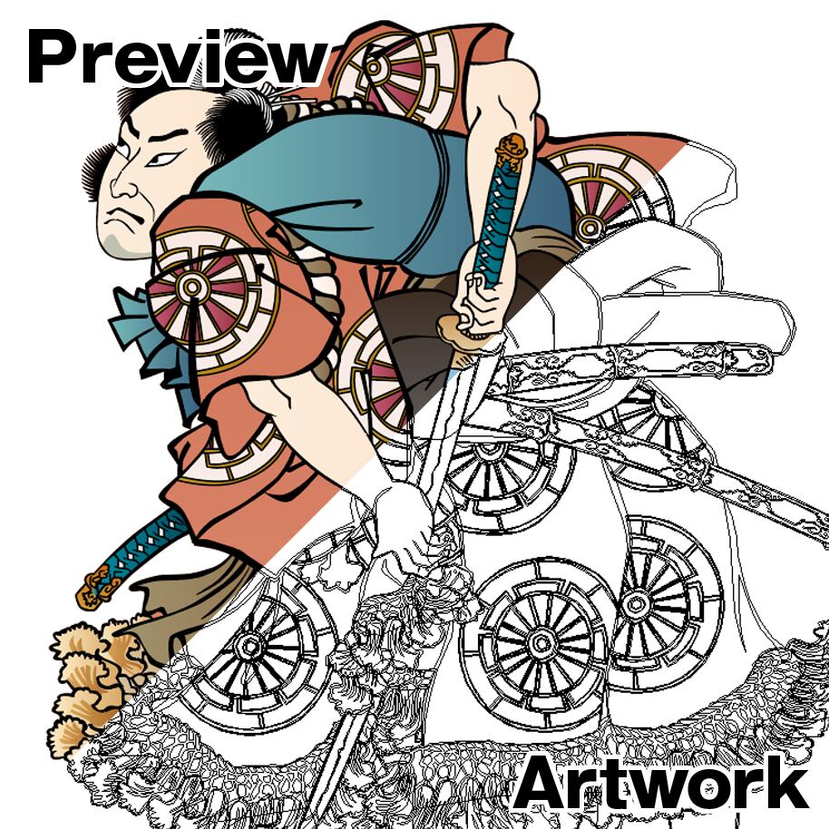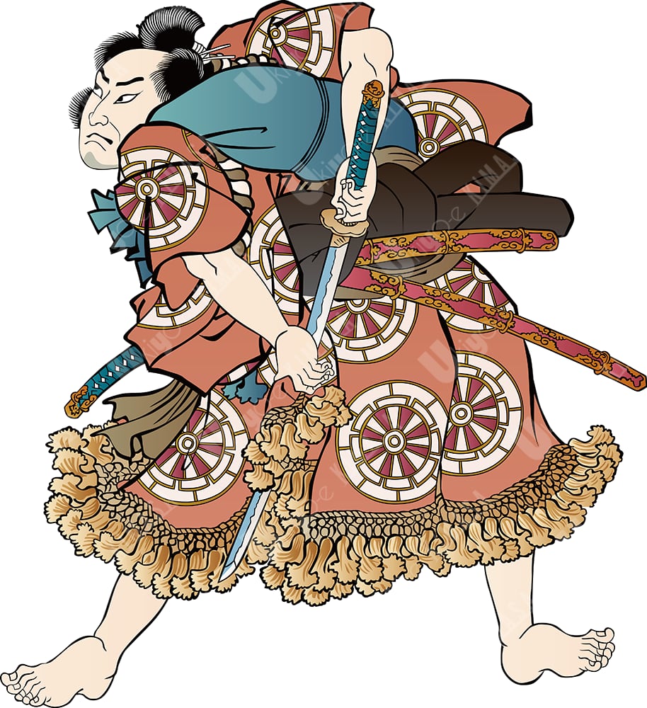 This artwork is a modern vector reconstruction of a traditional Musha-e ukiyo-e motif.