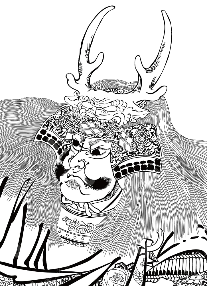 By reducing the palette to black and white, the commanding presence and symbolic strength associated with Shingen are emphasized—making it suitable for refined contemporary design and print applications.