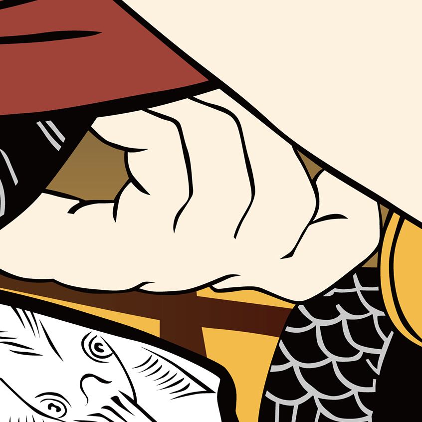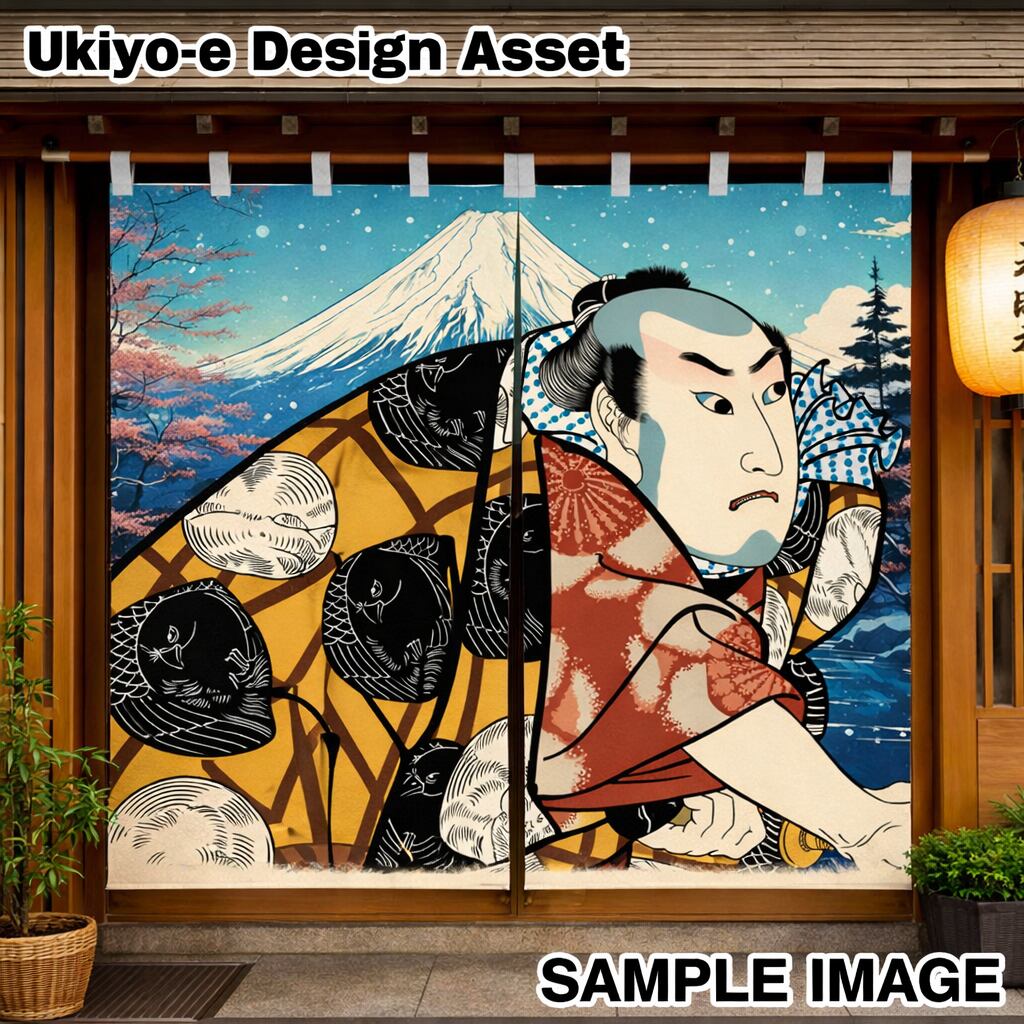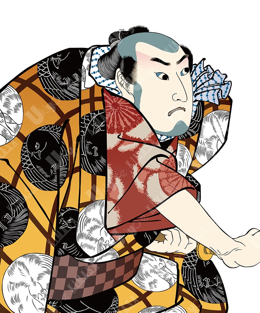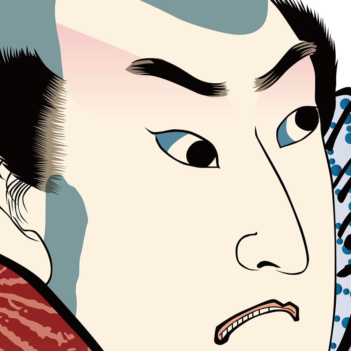 This artwork is a modern vector reconstruction inspired by traditional Yakusha-e ukiyo-e, which depict kabuki actors in expressive poses and roles.