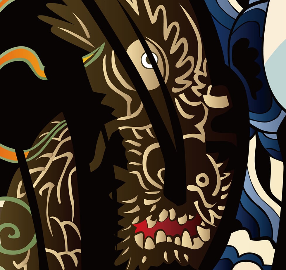 This artwork is a modern reconstruction of a traditional ukiyo-e motif,