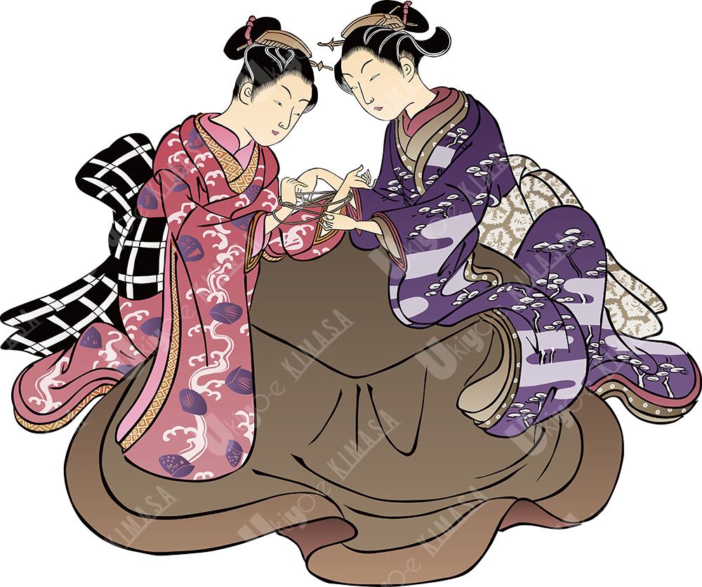 こたつであやとりする二人