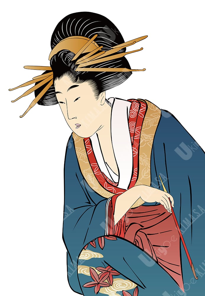 煙管を持つ和服女性