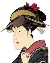 A clean ukiyo-e inspired illustration of a woman in a kimono,