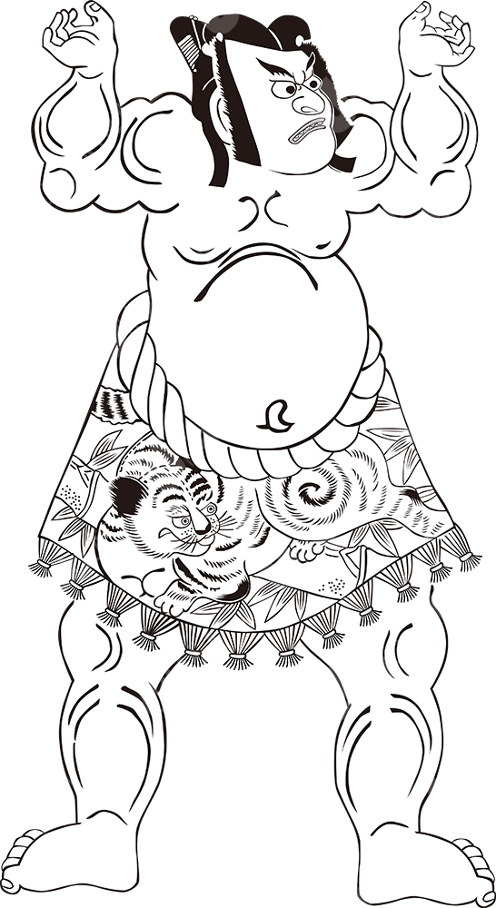 Sumo Wrestler Raising Both Hands (Monotone)
