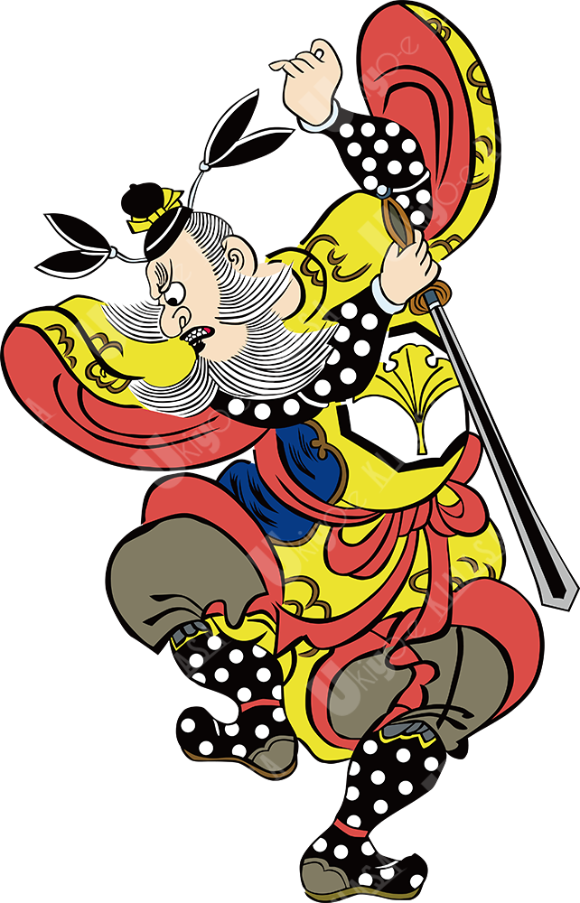 A kabuki actor captured in a dynamic dancing pose, reconstructed as clean vector data for practical design use.