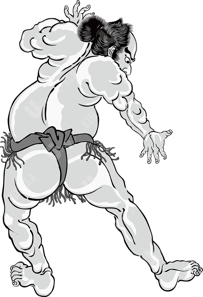 A sumo wrestler reconstructed as clean monotone vector data, suitable for flexible use in modern graphic and editorial design.