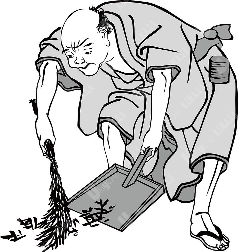 掃除する人(白黒)