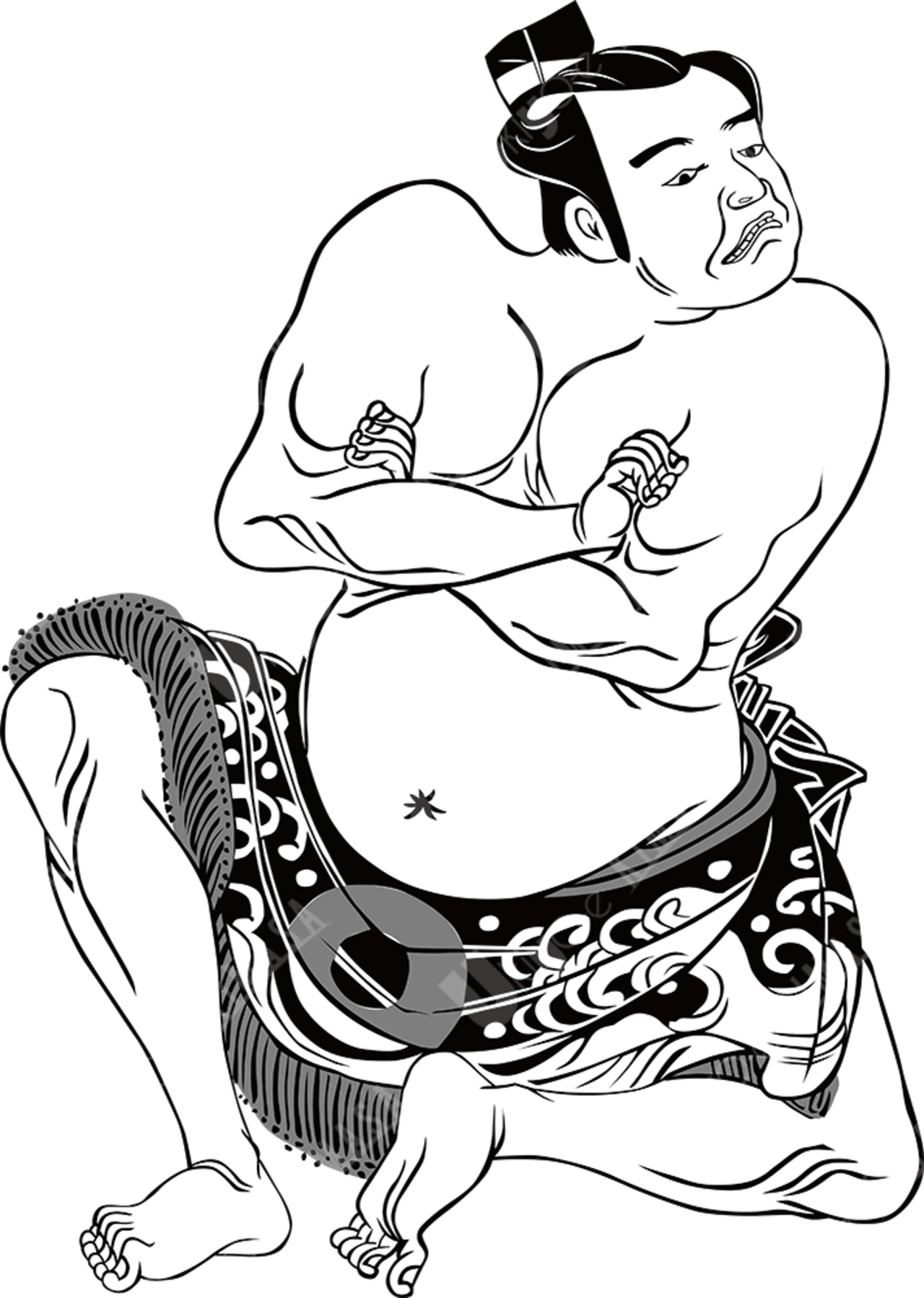 座る相撲取り(白黒)